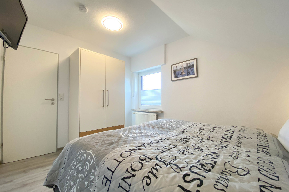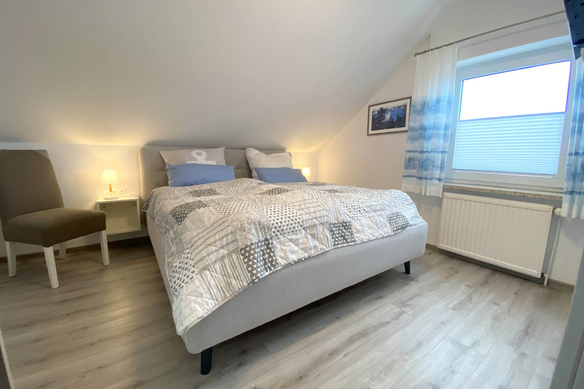 In der ersten Etage befinden sich die Schlafräume, bestehend aus 2 Schlafzimmern mit Doppelbetten. Das Bad mit Tageslicht ist ausgestattet mit Dusche und WC.